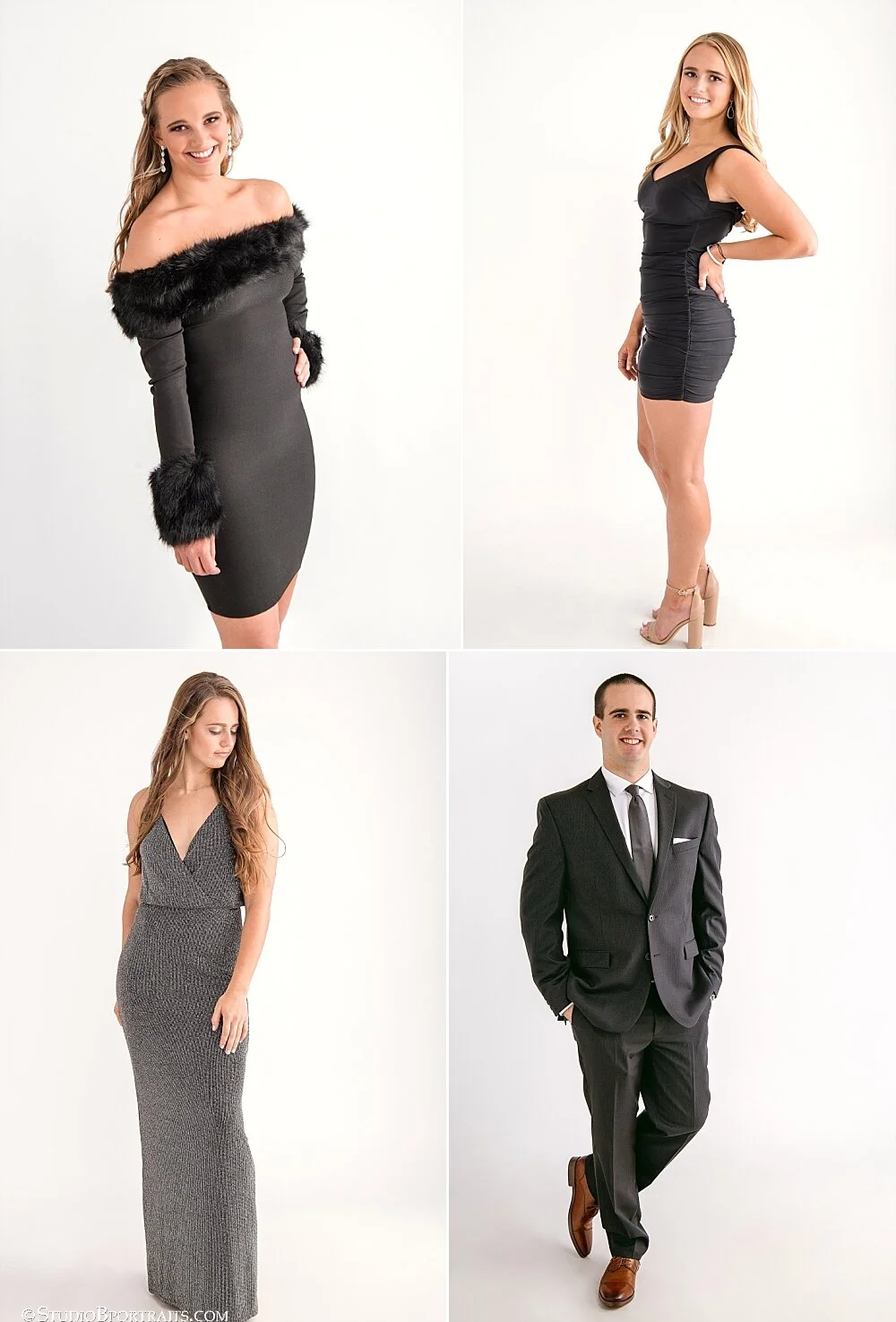 Paying special attention to favorite features and style preferences for each person is a great way to add variety to the overall look and feel of your family portraits. Adore your neckline? Show a little shoulder. Beautiful biceps? - go sleeveless. Love your legs? Why not put those gams on display!