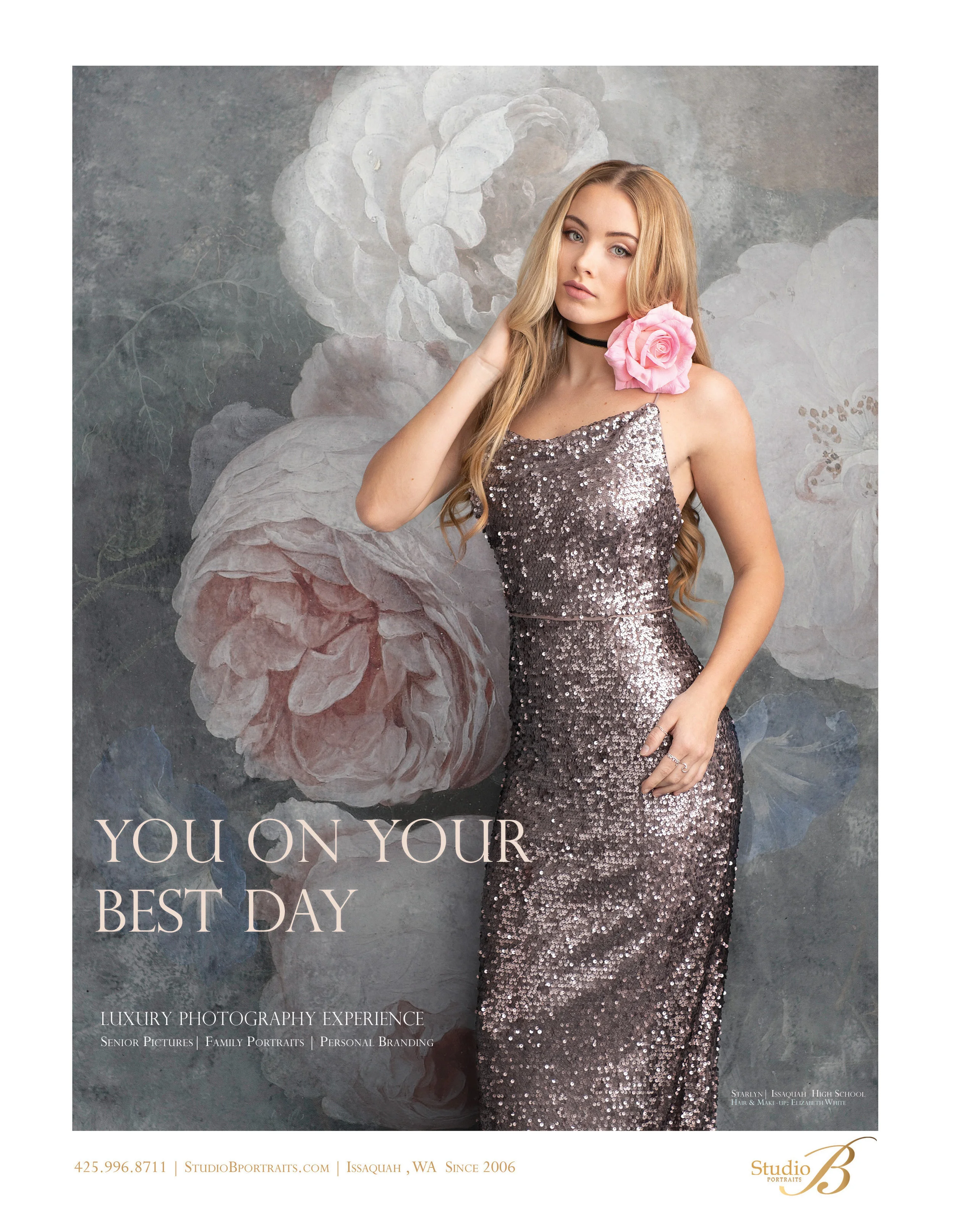 Where do we even start with this sweet soul? We have worked with Starlyn’s family for eight years now, and each photoshoot reminds us why we adore her and each member of her family. Starlyn is part of our new Class of 2020 Studio B Seniors Model Team representing Issaquah High and we were thrilled for the opportunity to feature her in the new April issue of 425 Magazine.