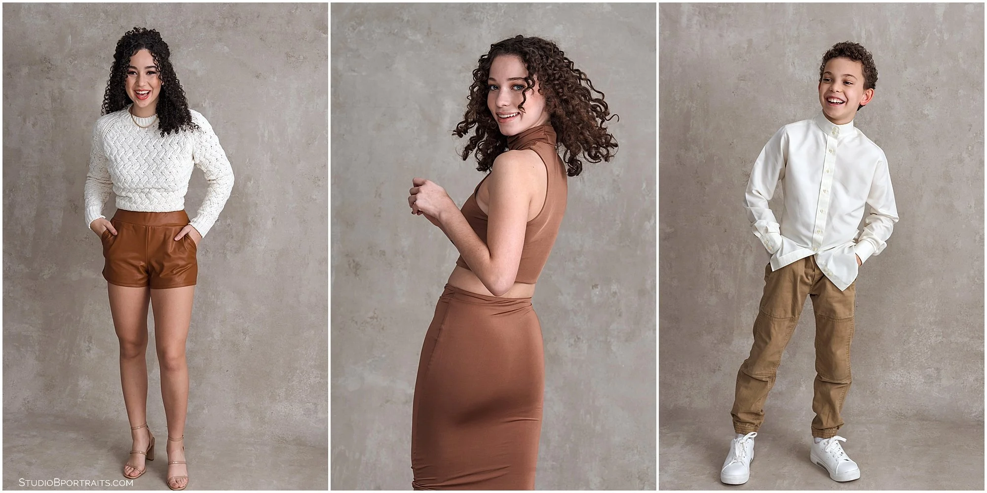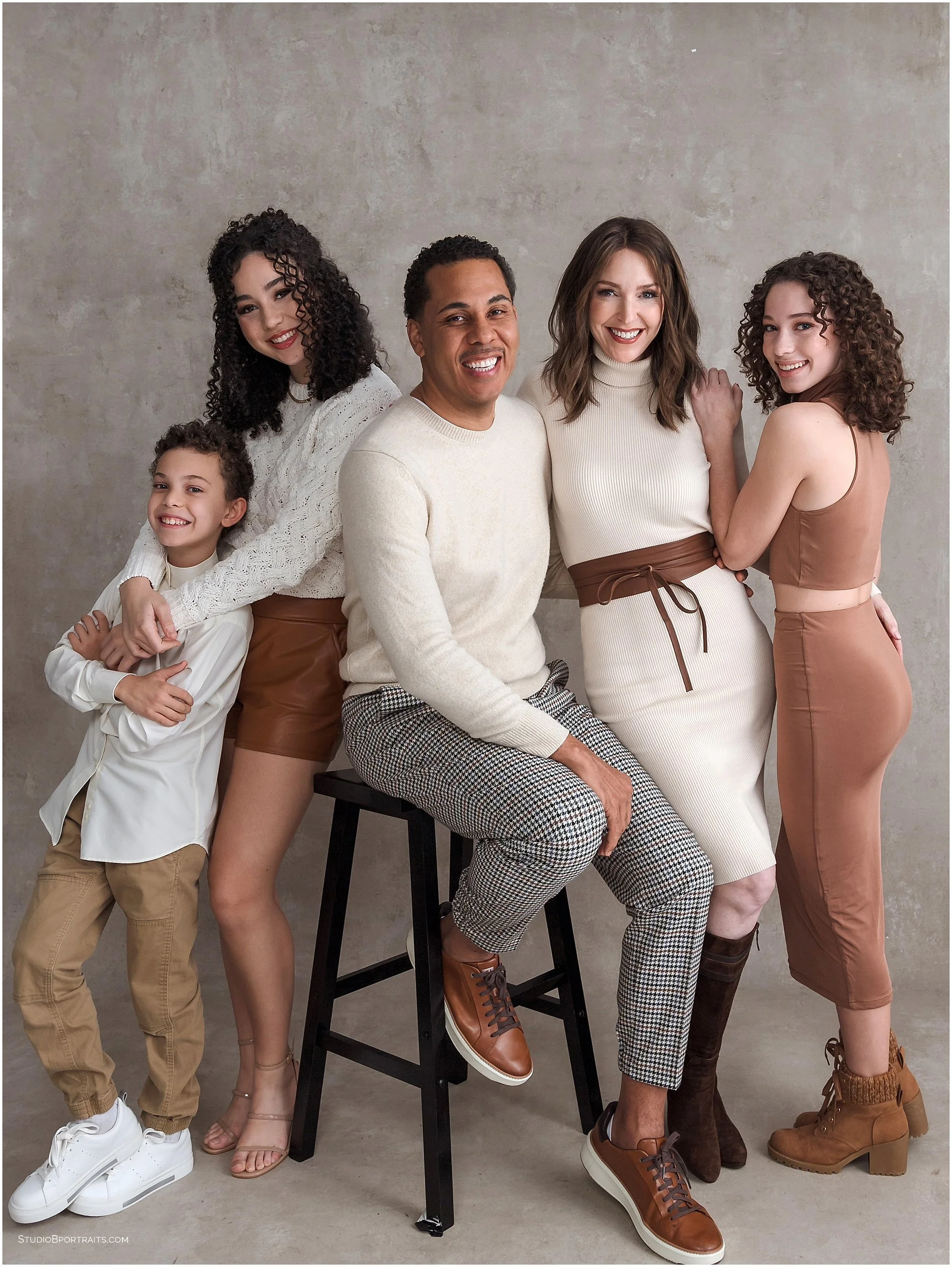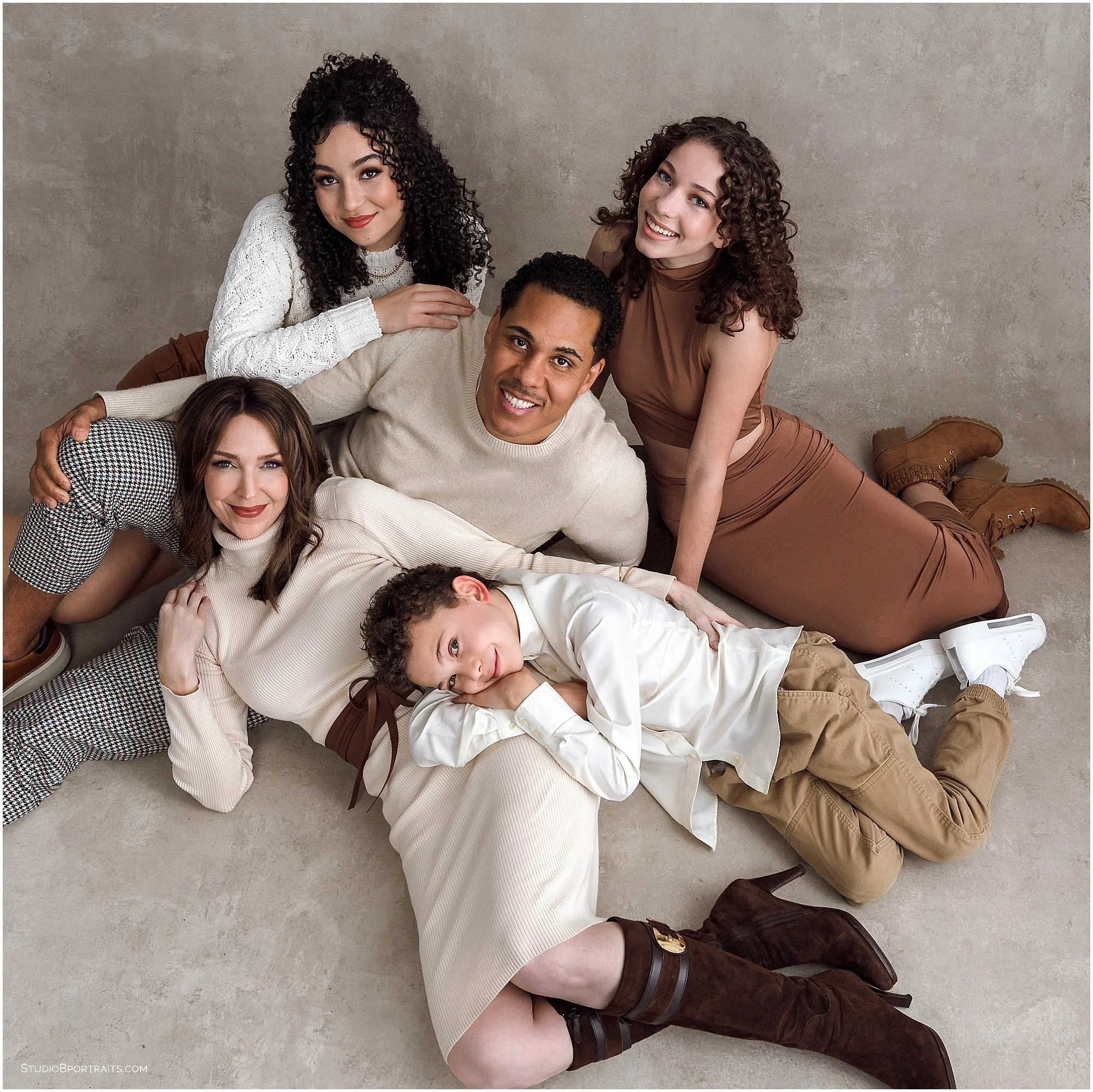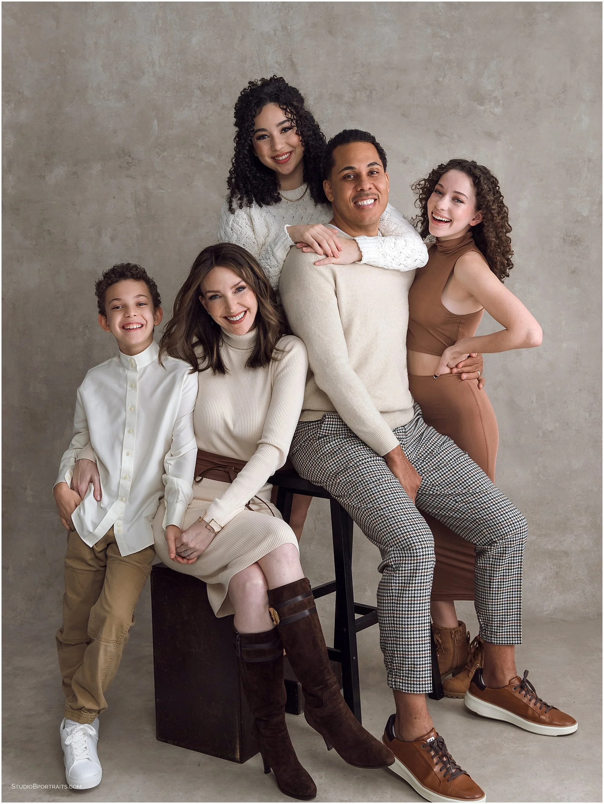 This year I decided to keep it cozy in the studio. Now that my girls are out of braces I’m ready to update our living room wall with a new family portrait so I selected a color palette that would complement our home.. warm, neutrals for the win.