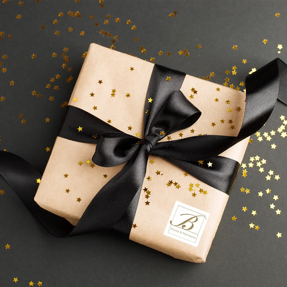 Find a gift for the person on your list who has it all. Each gift includes chic black packaging with gold ribbon, with your choice of Headshot Special, Family Portrait Session, or Senior Portrait Session.