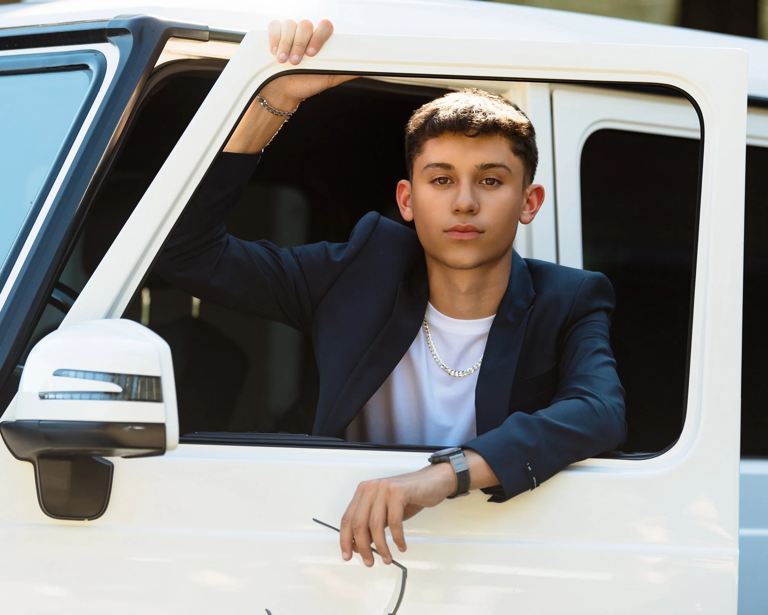 One bold moment can transform your look from “everyday” to “editorial”! A structured coat. Luxe gold hoops. A pair of killer shoes. Or in the case of the Rivera boys…a pair of luxury vehicles. These pieces photograph beautifully and give your portfolio that magic touch.
