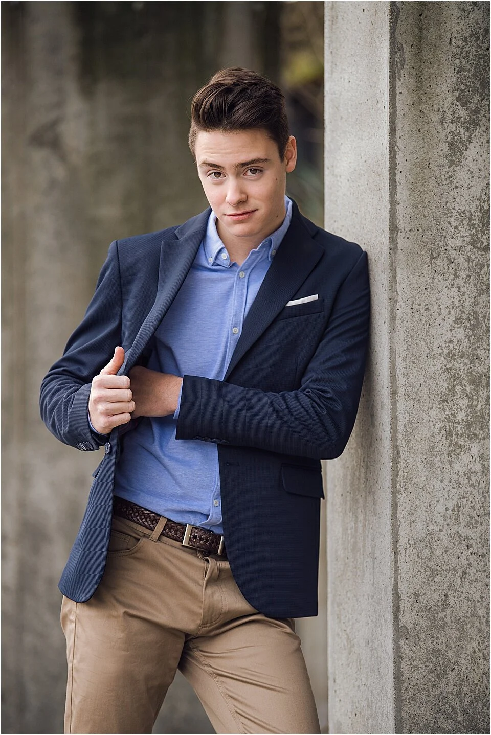 An easy smile paired with a classic blue blazer and timeless button down becomes decidedly modern with a contemporary hair cut. (TIP: schedule your hair cut about a week in advance of your session. That buffer allows for you to make adjustments on edging or styling prior to your shoot)