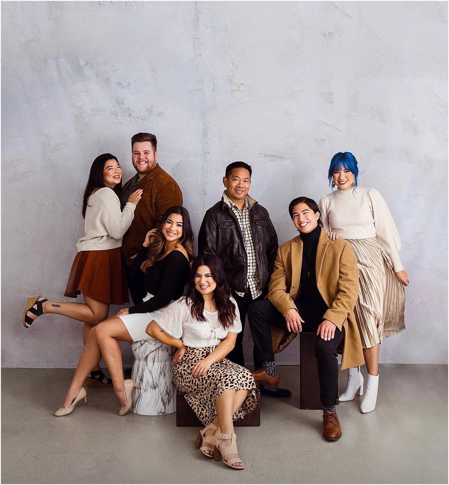 Since the weather mood swings of the PNW can be unpredictable, we opted this year for a chic studio look. Brooke made us feel like we stepped right off the cover of Vogue, photographing our big family in a way where every person felt special!