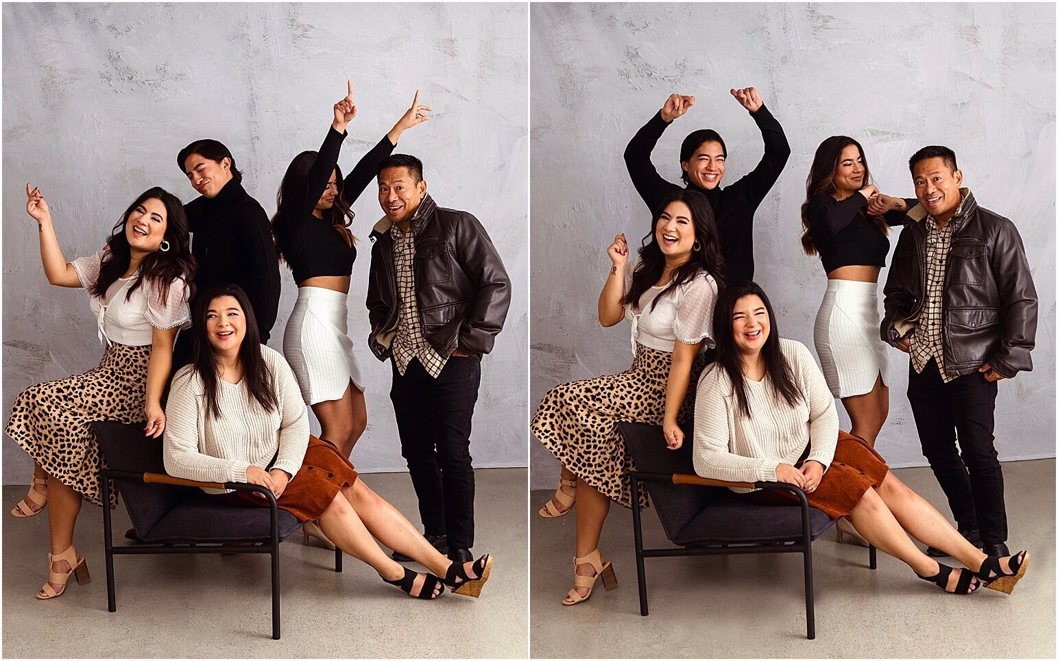 From coordinating every person’s unique wardrobe, to dancing it out on set, to oohing and ahhing at the memories we look back on when all is said and done, my family adores Holiday Family Portraits because it is the perfect activity for us to do while our youngest siblings are home for winter break. We’re already planning for next year…