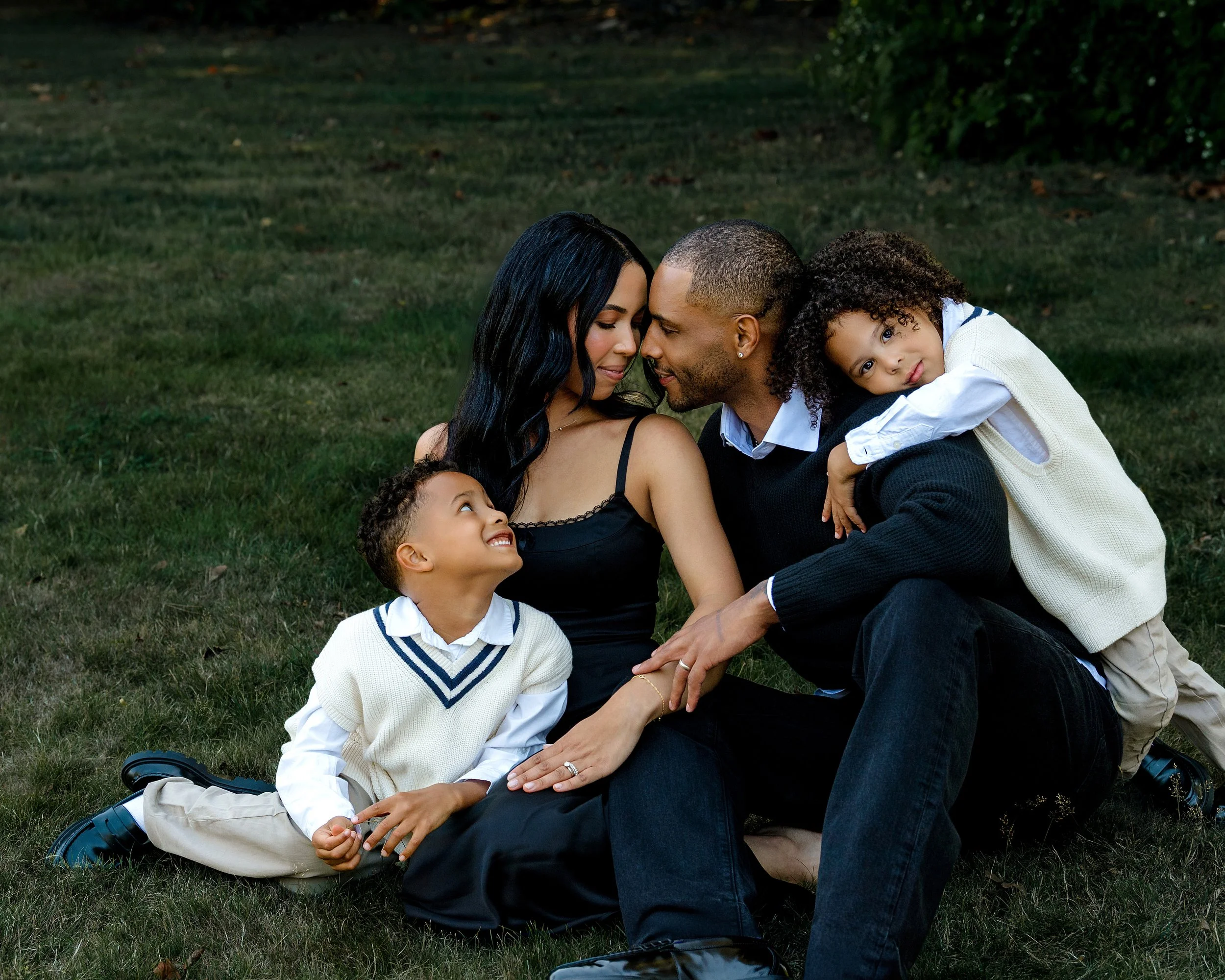 This sweet family nailed the preppy vibe that we all aspire to have in our wardrobe. The matching sweater vests for the boys, chic strappy black dress for mom, and classic texture for dad…they set a new high bar for timeless style.