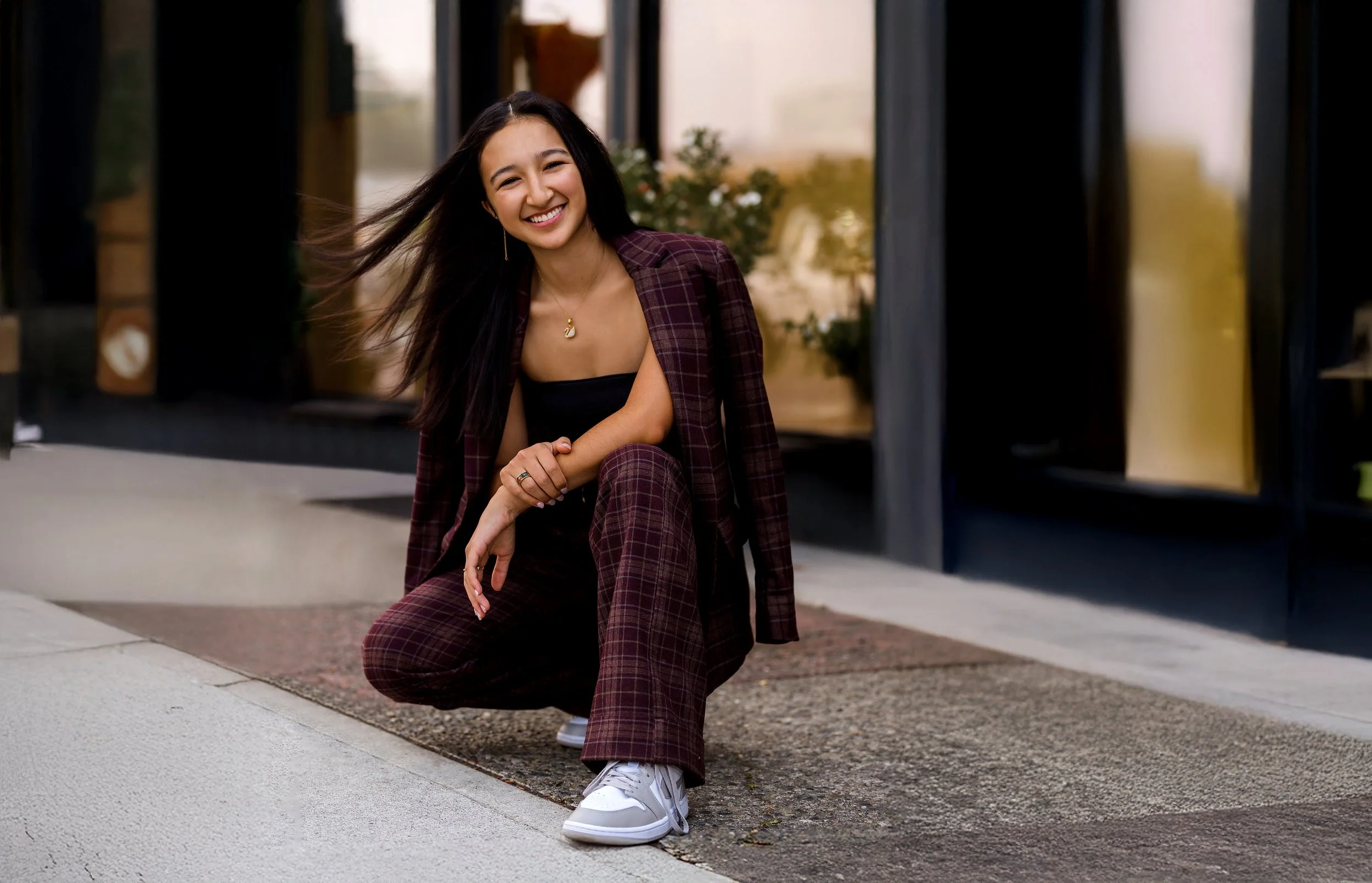 Lily redefined senior pictures with an edgy, street style twist. Her use of rich colors played well with unexpected details, such as the turned down waistline of her pants or the chic bandeau layered with the matching suit. 10/10, no notes, and heart eyes forever from our team!